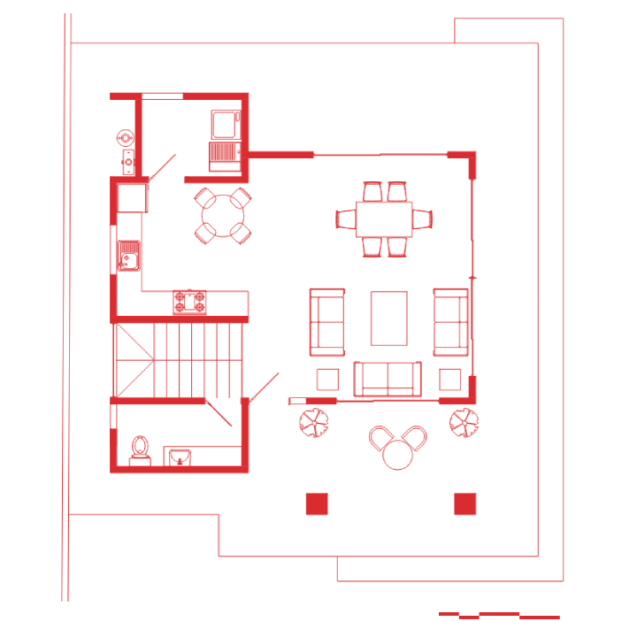 La planta baja fue diseñada bajo el concepto de espacio abierto. Desde el acceso principal, se percibe inmediatamente la conexión visual entre las áreas sociales, lo cual amplifica la sensación de amplitud.