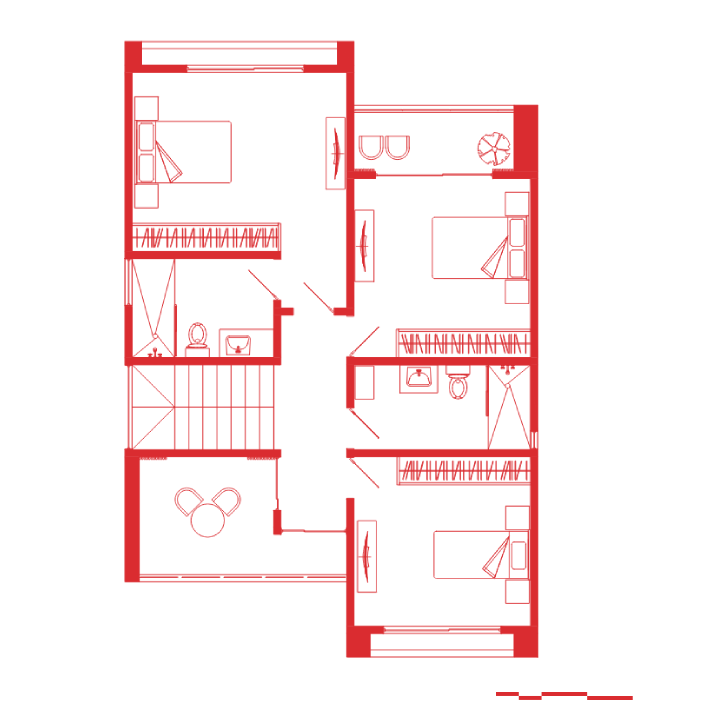 En el segundo nivel se desarrolla el área privada de la vivienda, organizada para maximizar confort y privacidad.