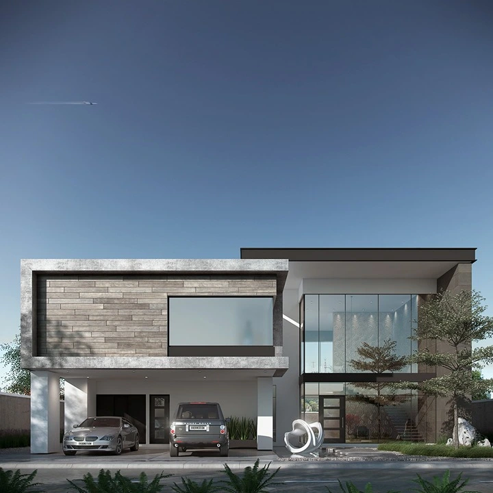 La casa moderna Nogal es una casa residencial de estilo moderno contemporáneo diseñada con planos de casa que priorizan amplitud, iluminación natural y conexión interior–exterior. Su fachada combina volúmenes limpios, revestimientos pétreos y ventanales a doble altura que aportan carácter y elegancia. El resultado es una vivienda funcional, sofisticada y perfectamente adaptada al estilo de vida actual.