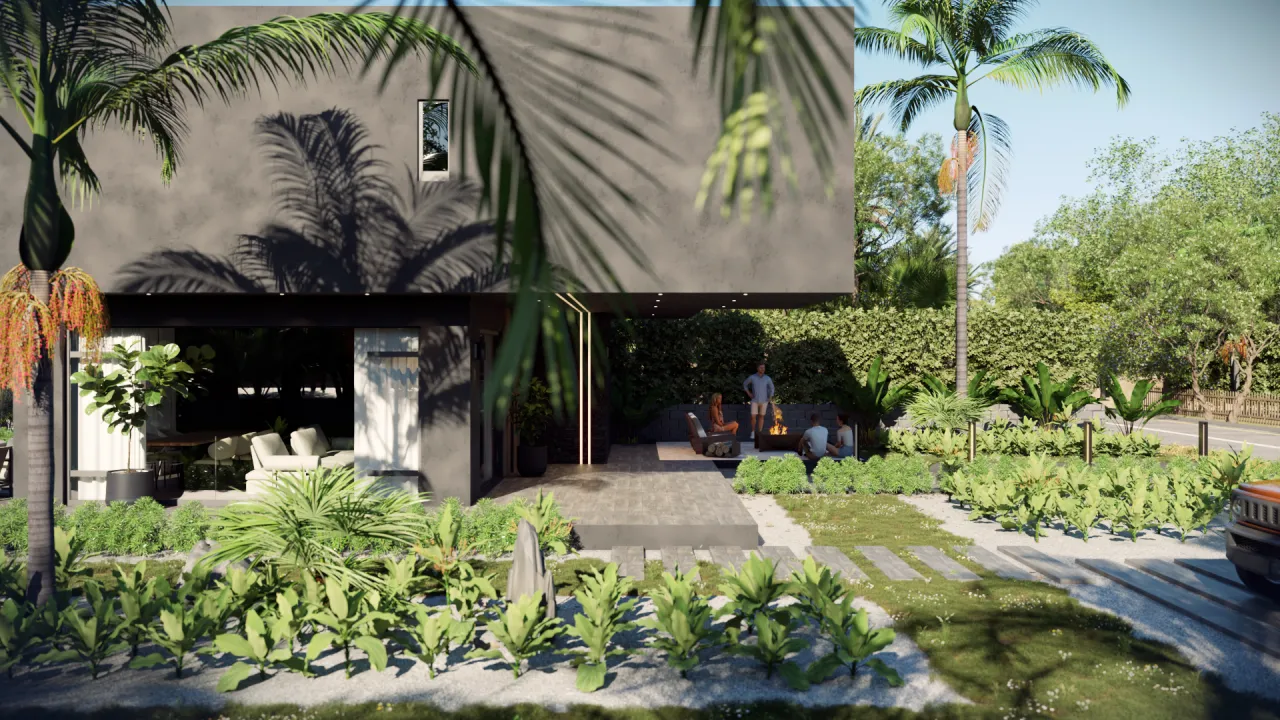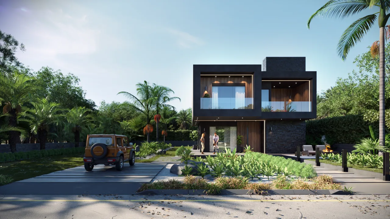 Casa Bolaina es una respuesta audaz al clima tropical de Tabasco. Su diseño se define por el contraste: una volumetría sólida y elegante en tonos oscuros que se suaviza con la calidez de la madera y la transparencia del vidrio. La fachada no solo es estética; sus voladizos funcionan como escudos solares, protegiendo el interior y creando sombras que dan profundidad al diseño.