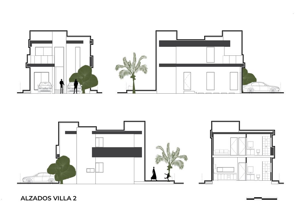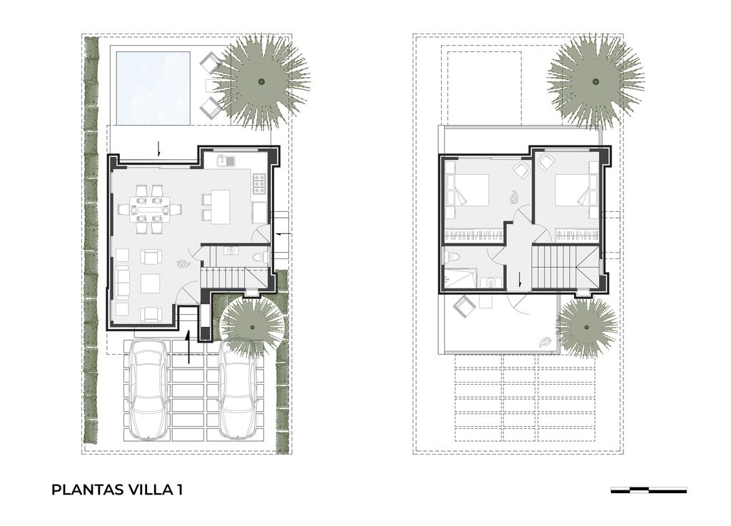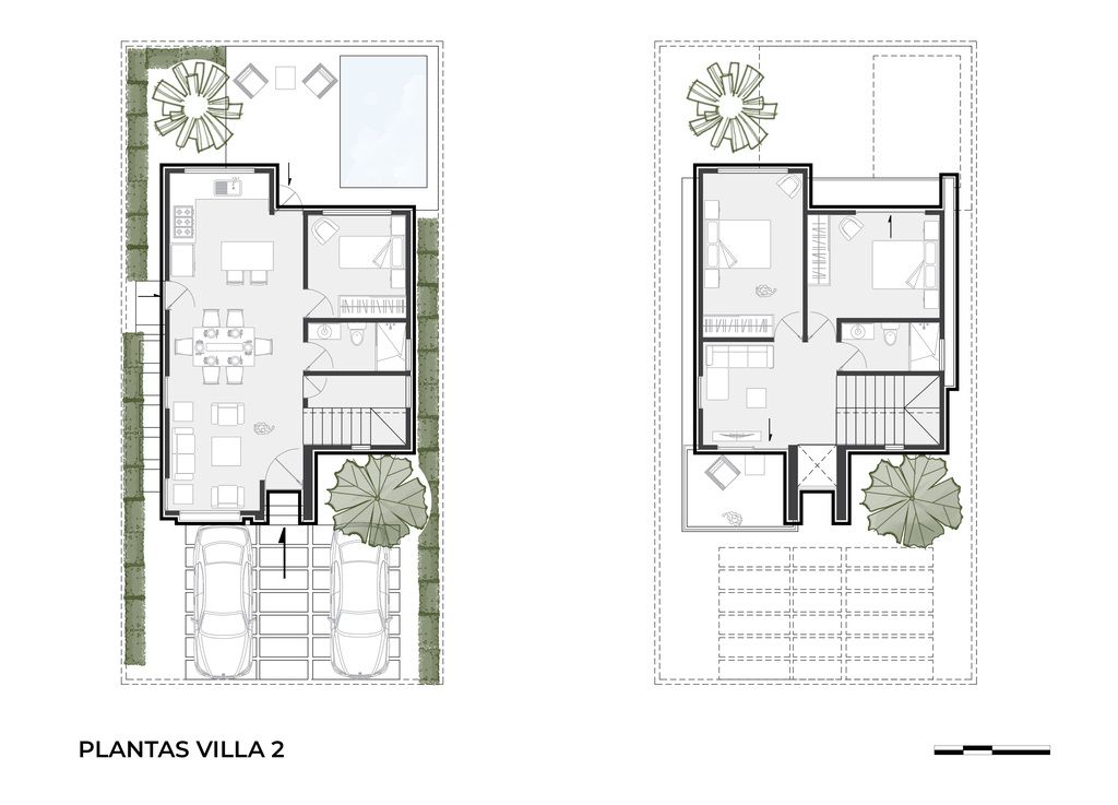 Ambos modelos de villa, si bien comparten una estética común, presentan distribuciones optimizadas para distintos estilos de vida, manteniendo la coherencia en la separación clara de las áreas sociales y privadas.